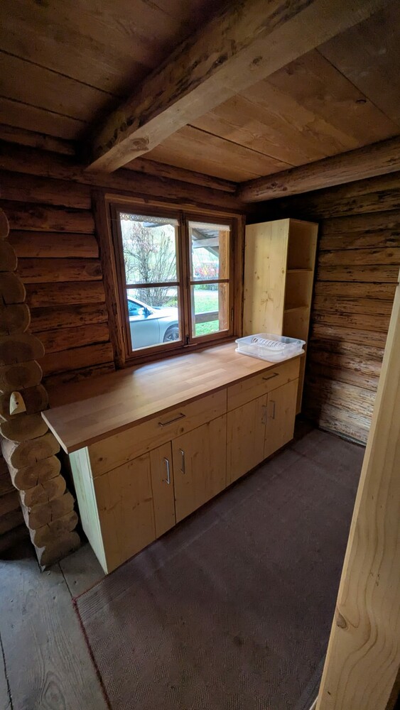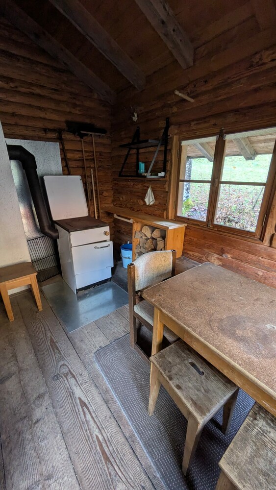 Bitte beachten Sie, dass die Hütte oben am Dach eine Öffnung im Giebel hat und es daher in den Wintermonaten sehr kalt in der Hütte werden kann.